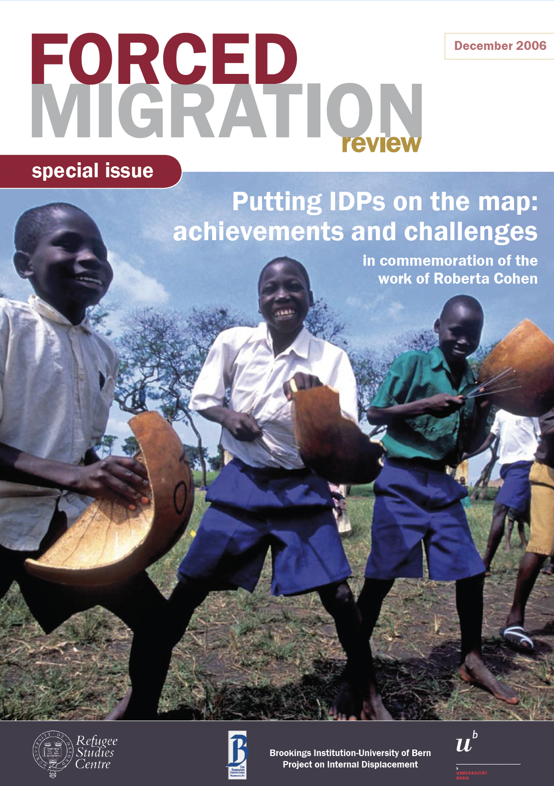 After twelve years as Co-Director of the Project on Internal Displacement at the Brookings Institution, Roberta Cohen retired at the end of 2006. This special issue not only commemorates Roberta’s work but also takes stock. The articles explore lessons learned from trying to apply the Guiding Principles, the implications of institutional changes for the protection of IDPs and opportunities and challenges for putting the protection of IDPs into practice. The authors remind us how much progress has been made and the importance of Roberta’s contribution. However, they also warn us how much remains to be done.