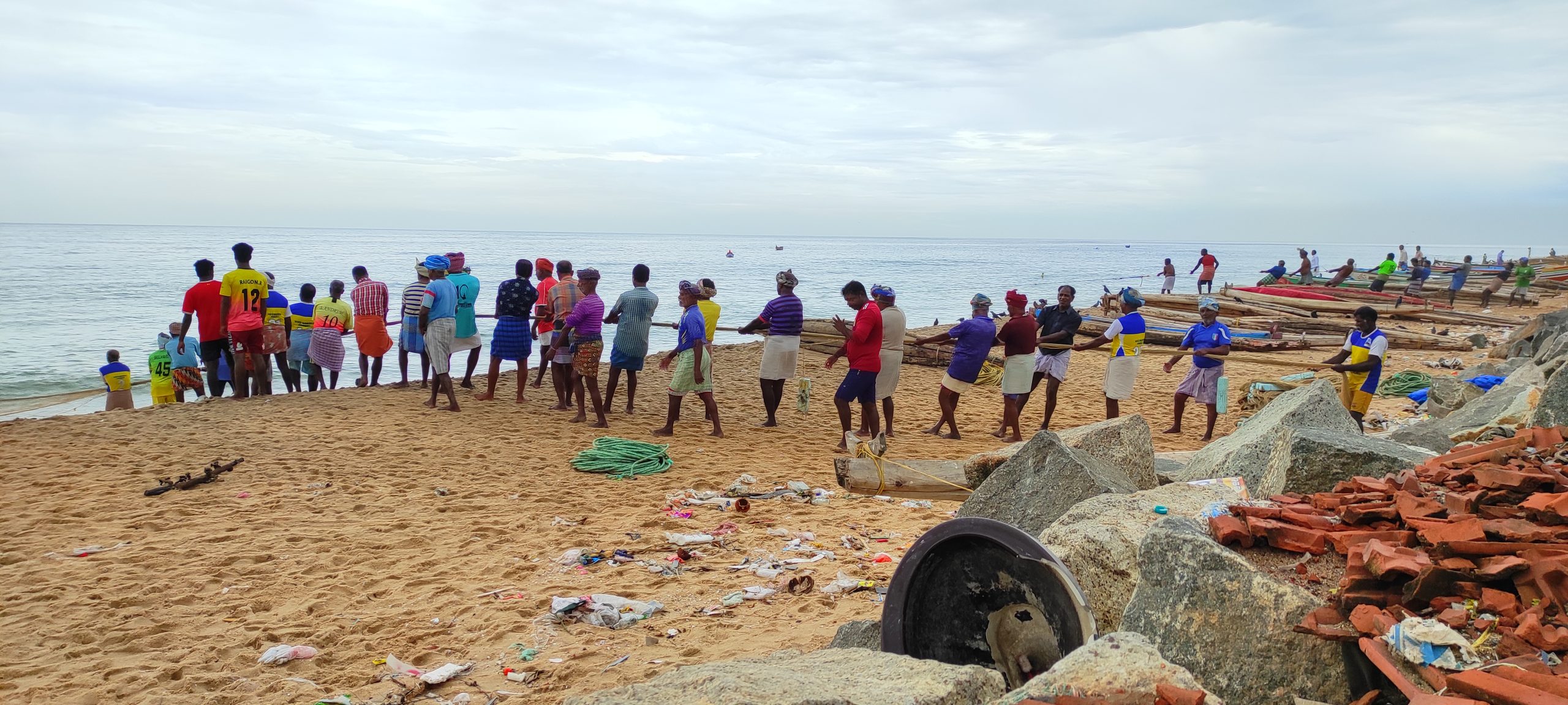 However, in recent years, the coast has become a place of disruption and displacement due to climate change, poorly planned infrastructure development and environmental degradation. The crisis is more than just environmental, as uncontrolled coastal development destroys mangroves and fishing infrastructure, saltwater intrusion makes farmland barren and rising waters destroy houses. For the 4.9 million marine fisherfolk who are the backbone of India’s fishing industry, these forces are tearing down their traditional ways of making a living and the cultural foundations that hold their communities together.