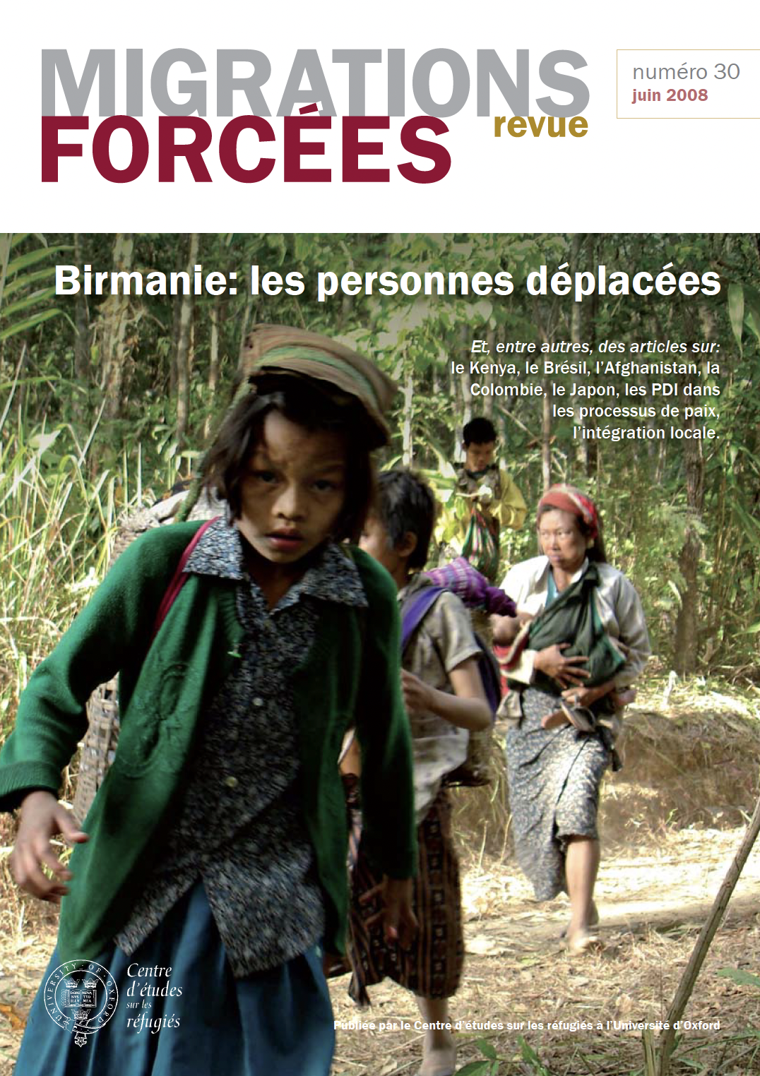 Avec la Révolution Safran en septembre 2007, la Birmanie était subitement devenue le centre d’attention de la communauté internationale. Elle s’était brièvement retrouvée à la une, alors que le monde surveillait la réponse du régime et guettait tout signe potentiel de progrès vers la démocratie et le rétablissement des droits. Toutefois, il y eut peu de développements sur chacun de ces fronts (et aucune résurgence visible de la violence ou des protestations) et l’intérêt suscité est maintenant éteint. L’objectif de ce numéro de RMF est de ranimer l’intérêt de la communauté internationale envers la crise des déplacements forcés que subit le peuple birman.